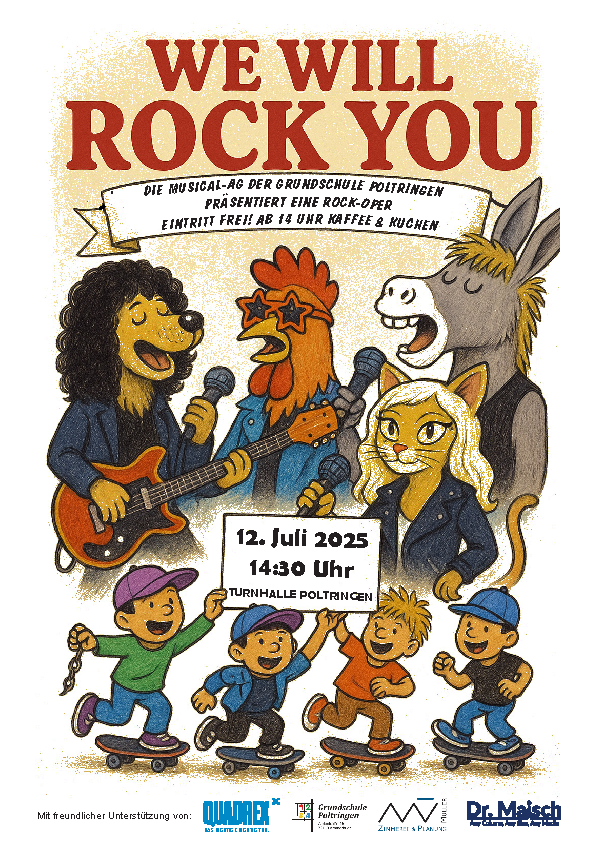 Auch dieses Jahr sind wir wieder bei der Grundschule Poltringen am Musical beteiligt. Am 12. Juli.2025 um 14:30 begleiten wir die Grundschüler bei Liedern wie I’m Still Standing oder Shallow.